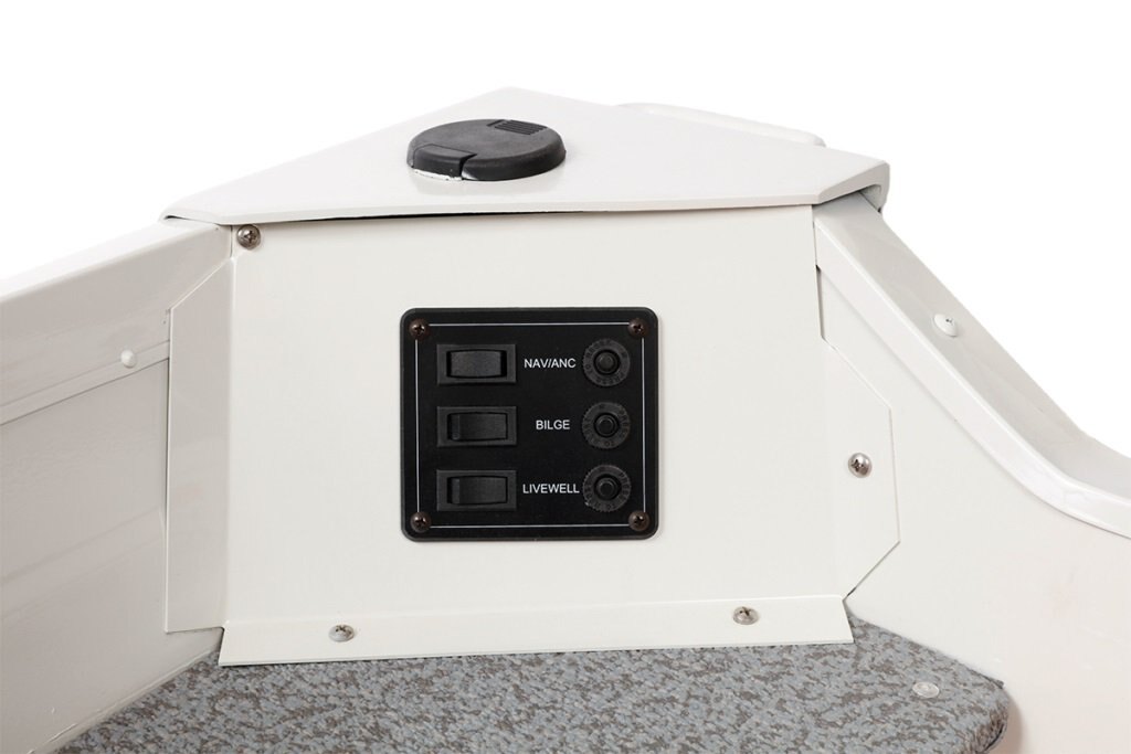 Construction .100 gauge one-piece aluminum seamless hull bottom 5º deep-v hull with hard chines Multiple .100 gauge bow ribs for maximum strength .100 gauge full-width bottom ribs 3 full-length .100 gauge keels Full-length molded splash rails Heavy-duty transom knee brace Aluminum bow with integrated grab and mooring handles Stainless steel bow eye or lift handle Stainless steel transom eyes or lift handles Ez-grip gunnel Level foam floatation Treated 7-ply marine-grade plywood floor and decks High-gloss oven-cured urethane exterior paint 3M highly reflective safety striping on Legend name