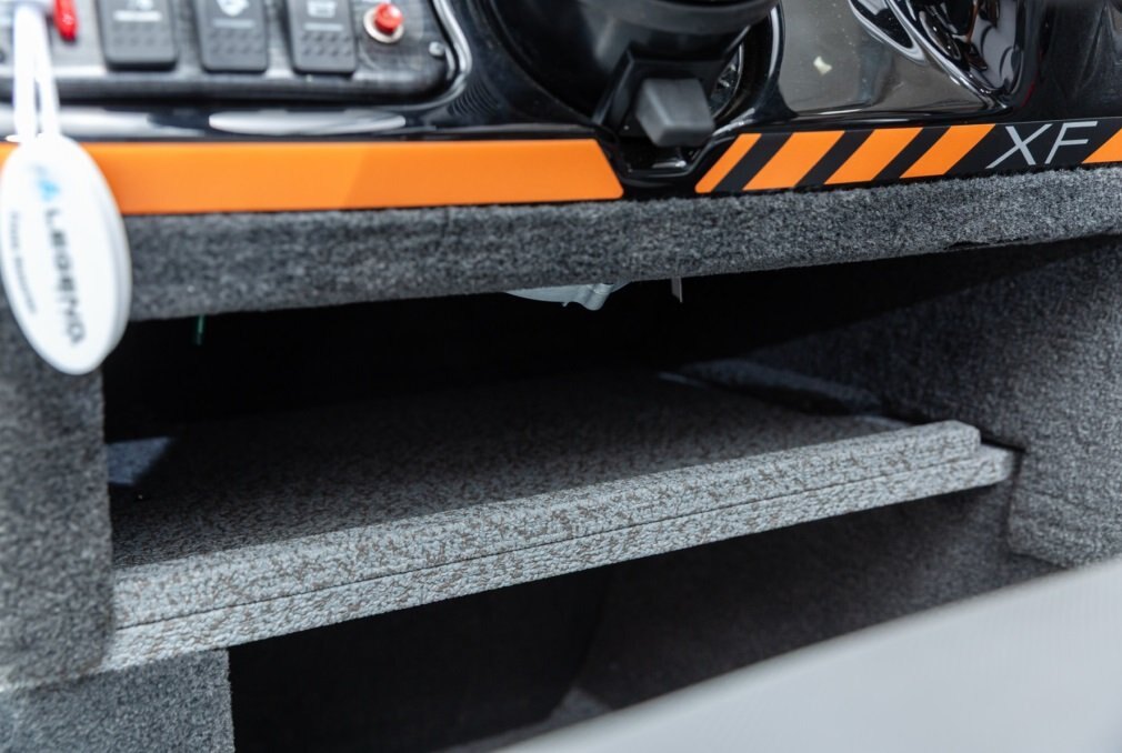 Construction Treated 7-ply marine-grade plywood floor and decks Intelliflex™ hull construction Injected and level foam floatation Pre-rigged Ski Pylon integrated mount .100 gauge thick aluminum hull and bow rib construction Wave-slicing Deep-V hull with reverse chines and extra-wide bottom - 17 degrees of hull Stainless steel transom, bow eyes and cast aluminum corner caps EZ-clean Dura-Deck vinyl floor in cockpit area and on all raised decks Large and practical slip-resistant side decks for easy boarding Legend High Flex Black Matte logo Torsion beam energy transfer system and rear safety splash pan Pre-wired for electric trolling motor - 12/24V Built-in under-floor fuel tank - 25 US gallons / 95 litres