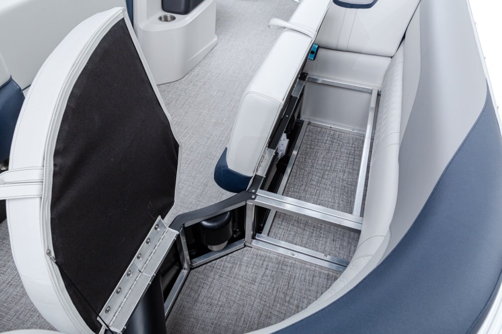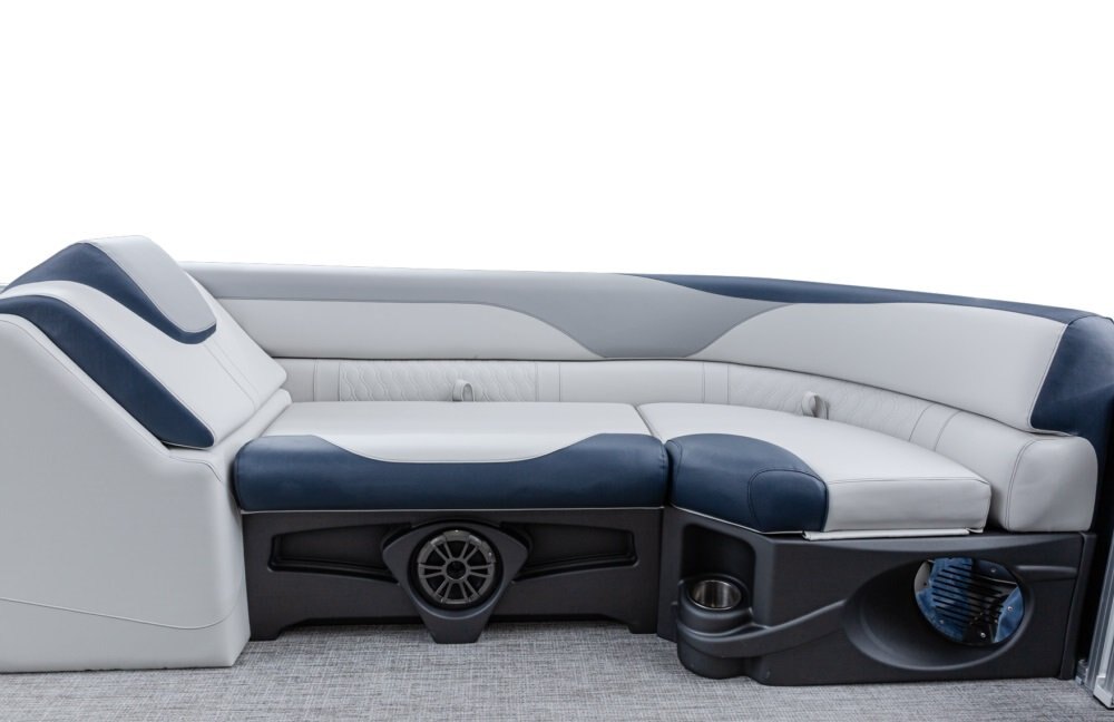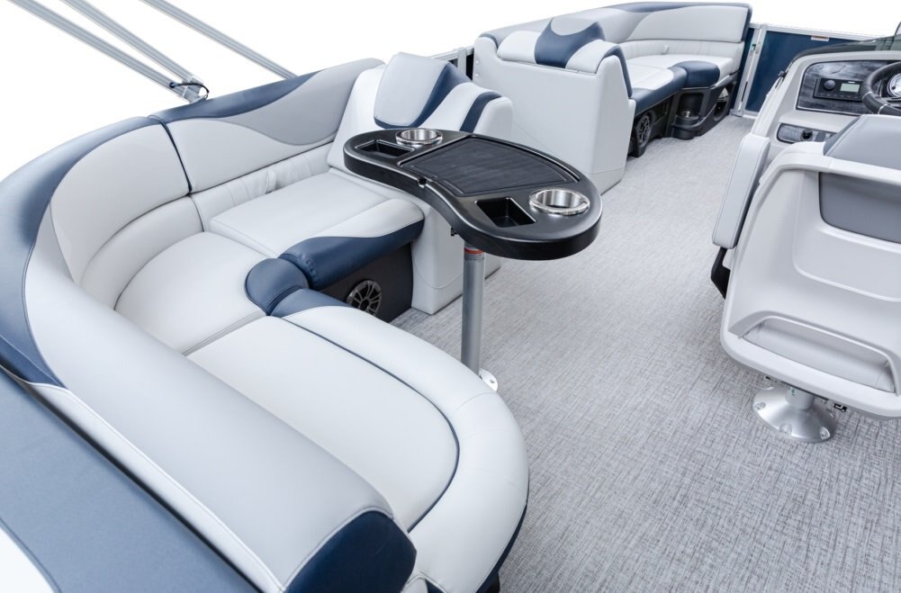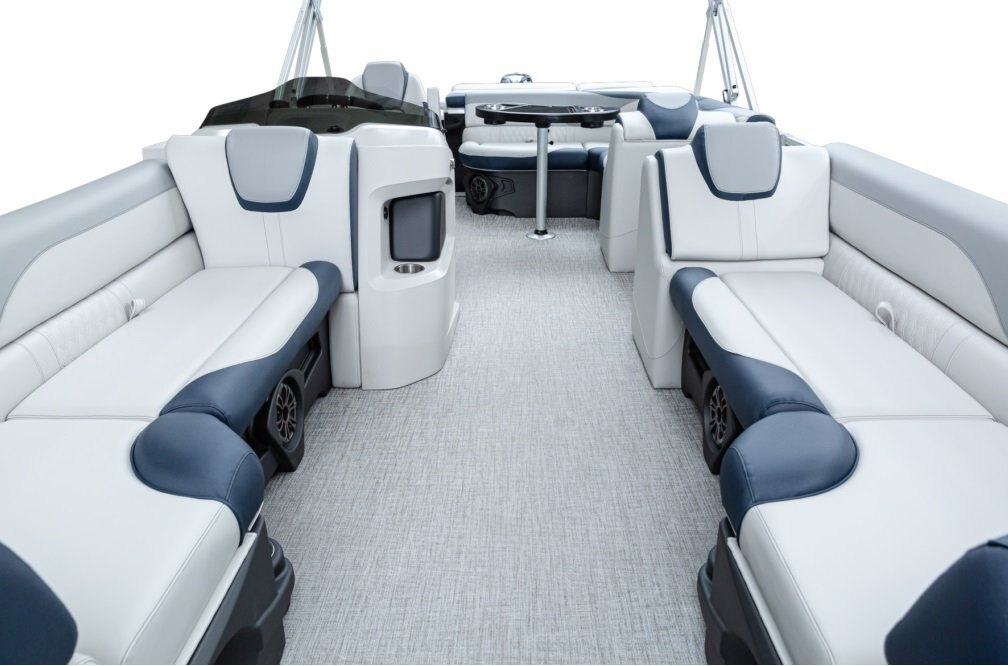 The pure pontoon experience: a stable deck and comfortable seating on top of high-performance tubes and a powerful Mercury motor.