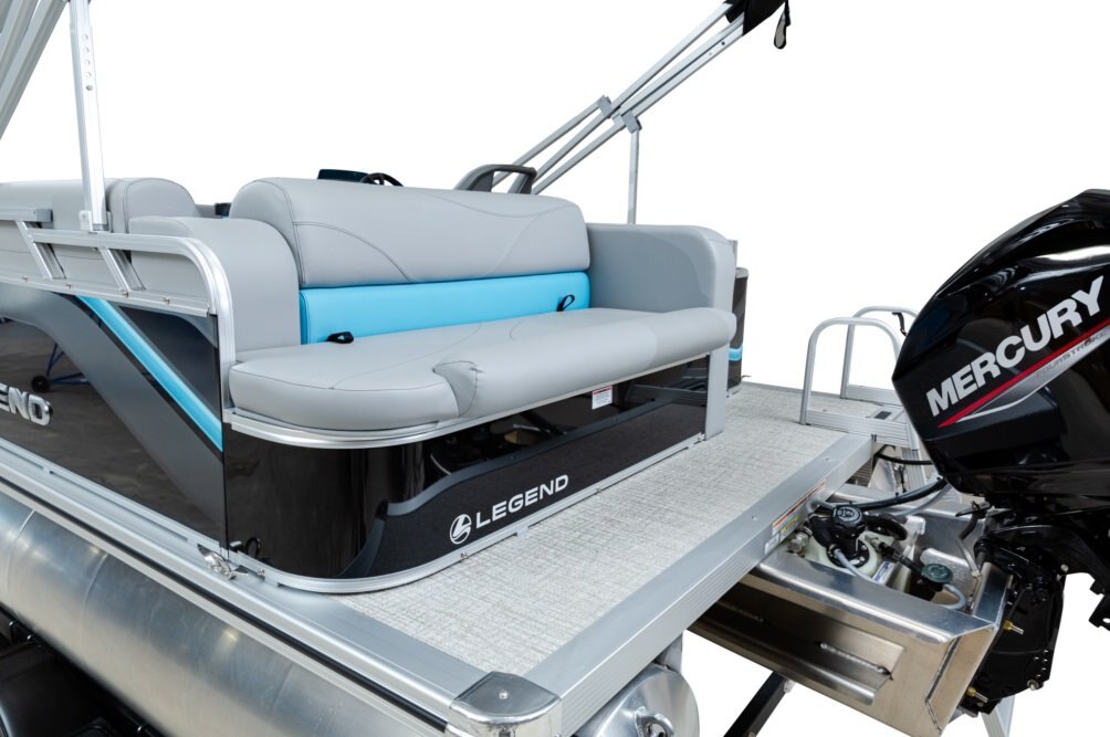 Construction 4 deck-mounted lift and mooring cleats Through-bolted floor fasteners and double-sealed seams Anti-vibration foam-backed quiet fencing Tough shark-nosed cones with spray-deflecting fins Performance-enhancing all-aluminum v-transom 8’ beam Pressurized triple-section tube design with ez-drain plug Full-length protective extruded keels on tubes Individually treated 3/4" 7-ply marine-grade plywood 1 1/4” raised aluminum fence rails with 3/8” risers 23" diameter .090 gauge pontoon tubes Vinyl non-skid strips for entry gates Easy access bow, port side and stern gates 18 Ft Tubes Fire Extinguisher Aluminum Ladder Aluminum Ladder 15 Gallon Direct Fill in Mount